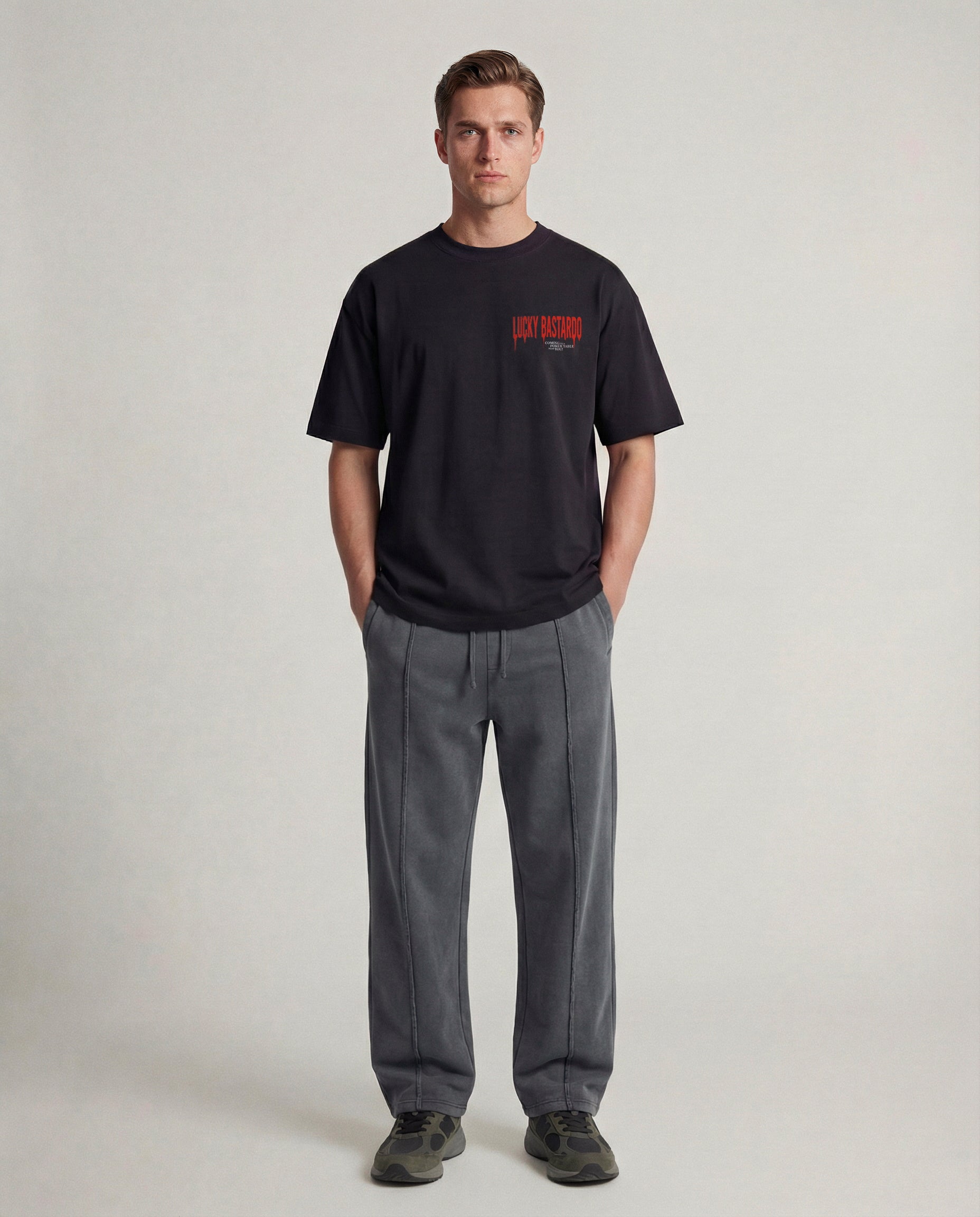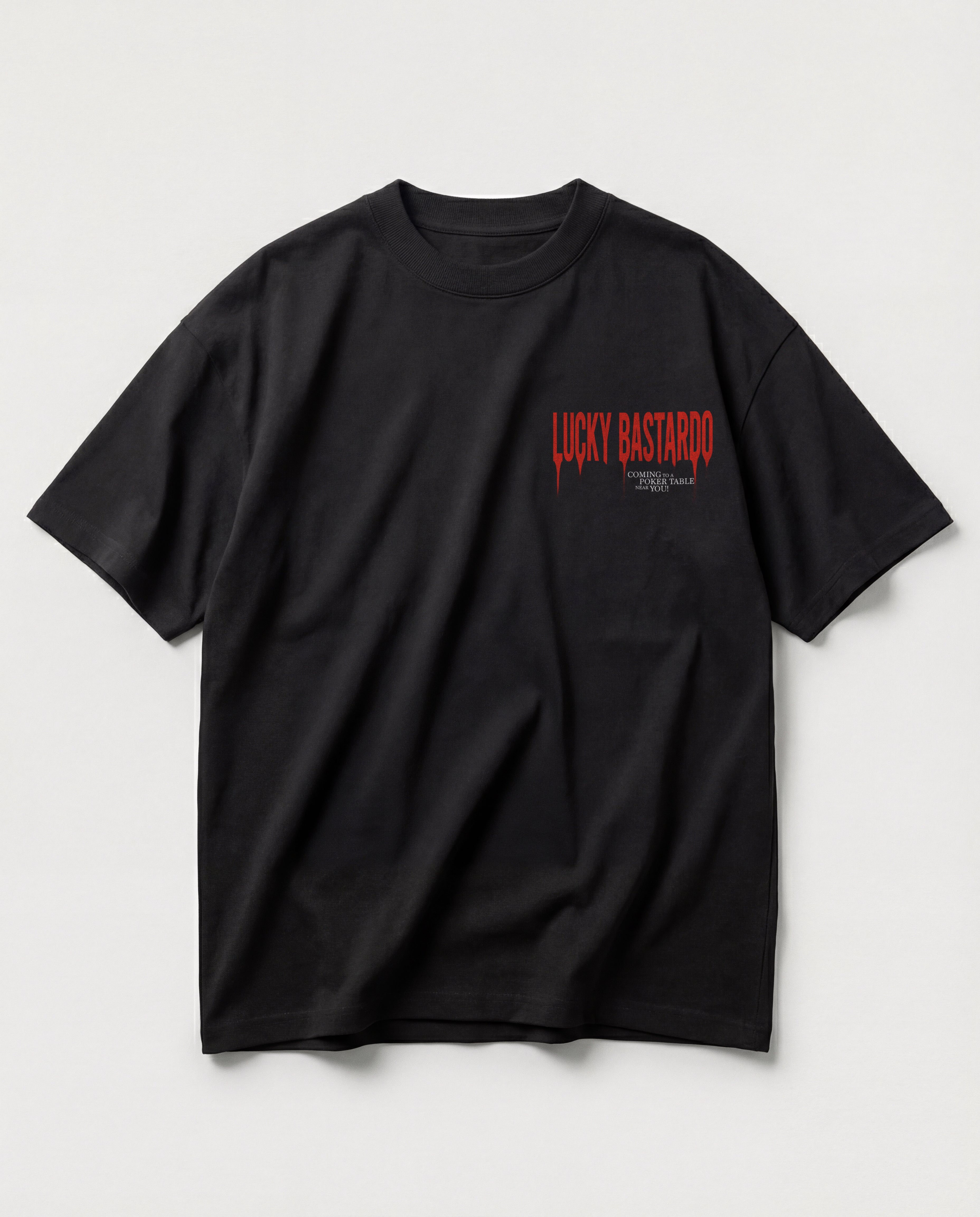 Lucky Bastard logo on chest